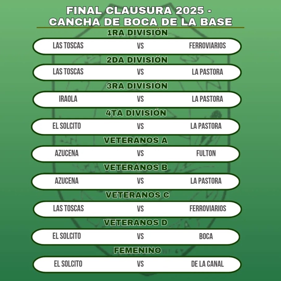 El próximo domingo 4 de enero, se disputarán las finales del fútbol agrario en la cancha de Boca de La Base, con encuentros decisivos en todas las categorías.