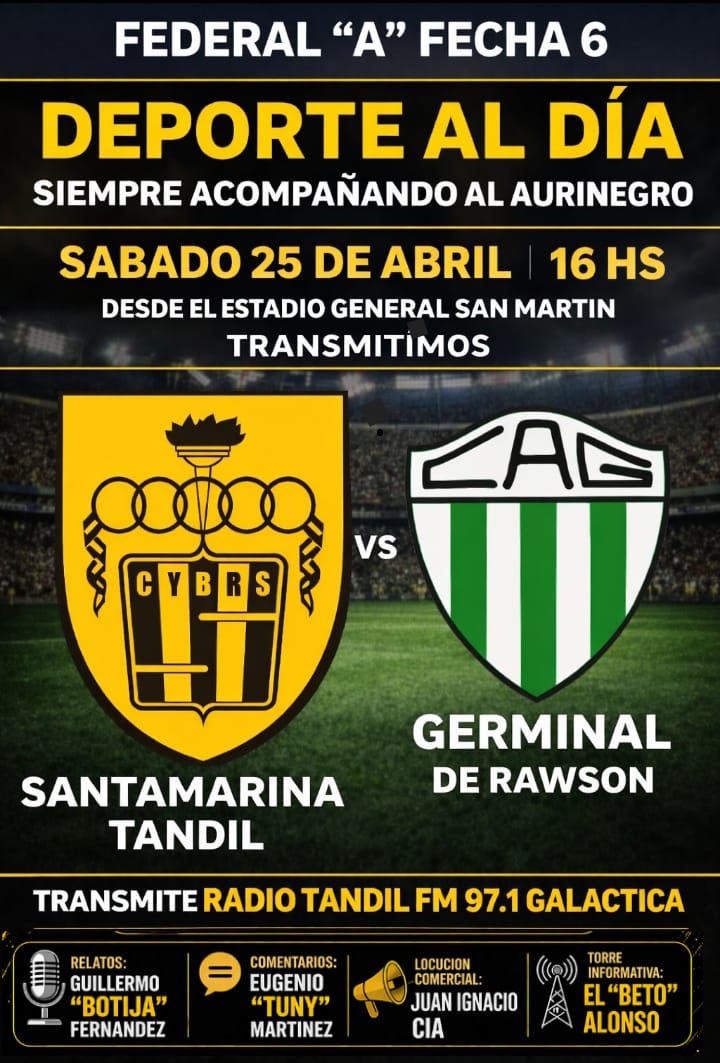 El aurinegro recibe a Germinal este sábado a las 18:30 y ahí estará nuestro equipo deportivo. Desde las 16 horas y por Galáctica FM 97.1 (Radio Tandil) relata Guillermo "Botija" Fernández, comenta Eugenio "Tuny" Martínez, locución comercial Juan Ignacio Cia, torre informativa "Beto" Alonso. La Radio, Santamarina, Deporte al Día y vos... Juntos a la Par!!!