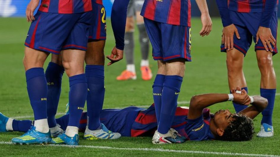 El 10 de los culés fue derribado por Yoel Lago en el área y se hizo cargo de la pena máxima a los 39 minutos con una resolución ajustada contra el palo izquierdo de Ionut Radu, quien se arrojó a ese lado, pero no llegó a desviar la pelota. Acto seguido, Yamal no festejó su anotación, hizo un gesto al banco de suplentes y se arrojó al césped para permitir el ingreso de los médicos.